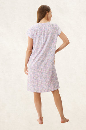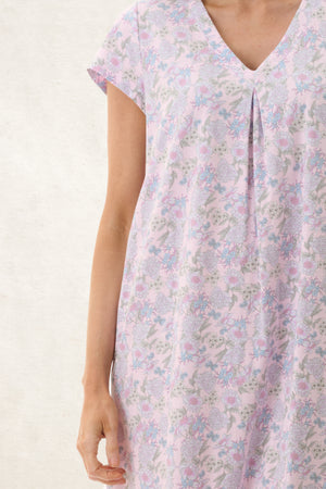 Embrace the charm of our Hope short sleeve short nightie featuring a V Neck with inverted pleat at the front and cap sleeves. This delightful floral nightie blends comfort and style effortlessly. Crafted from a blend of 50% Cotton, 45% Bamboo, and 5% Elastane, it promises a soft, breathable, and stretchy embrace for your most comfortable nights' sleep.