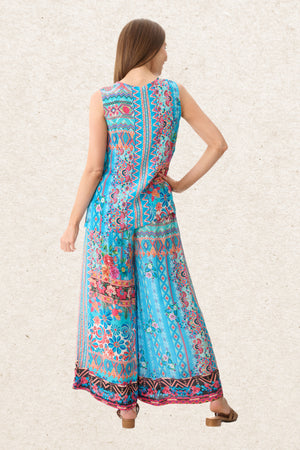 These engineered border print pants bring statement style and everyday comfort together. Designed with a relaxed leg and an elasticated waist, they offer an easy, flattering fit for all-day wear. Crafted from luxurious viscose silk-feel crepe, they move fluidly and feel incredibly soft against the skin. Wear them solo or pair with the matching sleeveless blouse for a bold, coordinated look.