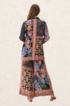This all-over print shirt combines a bold engineered border print with a classic collared, button-through design for effortless style. Crafted from luxurious viscose silk-feel crepe, it offers a soft, fluid drape that enhances its relaxed shape—perfect to wear on its own or match with the coordinating pant for a polished, put-together look.