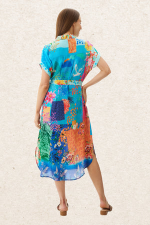 Refined and effortlessly wearable, this collared button-through dress is a modern wardrobe essential. Crafted from a viscose silk-feel crepe, it offers a soft, fluid drape with a touch of understated luxury. The extended sleeves provide relaxed coverage, while a removable belt lets you define the waist or wear it loose for an easy silhouette. Falling just over the knee, it strikes the perfect balance between polished and relaxed—ideal for workdays, weekends, or wherever your day takes you.