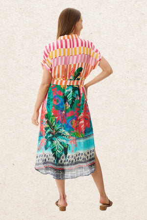 Refined and effortlessly wearable, this collared button-through dress is a modern wardrobe essential. Crafted from a viscose silk-feel crepe, it offers a soft, fluid drape with a touch of understated luxury. The extended sleeves provide relaxed coverage, while a removable belt lets you define the waist or wear it loose for an easy silhouette. Falling just over the knee, it strikes the perfect balance between polished and relaxed—ideal for workdays, weekends, or wherever your day takes you.