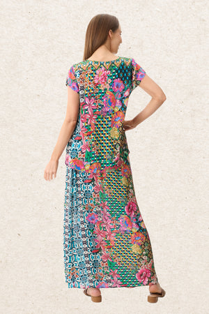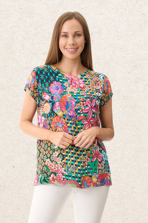 Featuring a striking all-over print, this cap sleeve top is designed with a classic crew neck and a flattering, easy fit. Made from viscose silk-feel crepe, it offers a smooth, lightweight feel with an elegant drape. Wear it on its own for a pop of print, or pair it with the matching skirt for a coordinated, statement-making look.