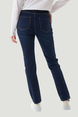 Designed with a clean straight-leg silhouette, this classic jean comes in a rich dark wash for a timeless, versatile look. Finished with brushed silver hardware, it balances everyday wearability with a polished edge—perfect for effortless styling from day to night.