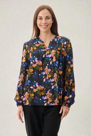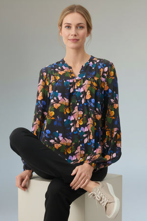 This button-through blouse features an all-over print with pintuck detailing at the front yoke and gathered sleeves for a delicate, feminine look. Finished with elasticated cuffs, it’s crafted from lightweight 100% viscose for effortless comfort and style.