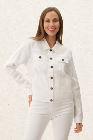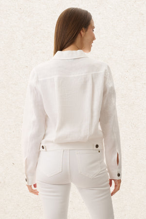 Lightweight and effortlessly cool, this linen collared button-through cropped jacket is a staple for your summer wardrobe. Crafted from 100% linen, it offers breathable comfort with a clean, structured look. Designed with patch pockets at the chest, buttoned cuffs, and a functional button-through front, it’s perfect for layering over dresses, tanks, or matching sets. The cropped length adds a modern touch to this timeless warm-weather essential.