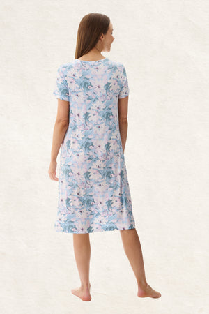 Introducing Amelia, a watercolour floral print on a lovely Mint colourway. This short sleeve short nightie is adorned with a delicate lace neckline, while front pleats and a floaty fit add an extra layer of charm. Crafted from buttery-soft modal, luxurious comfort and dreamy nights await.