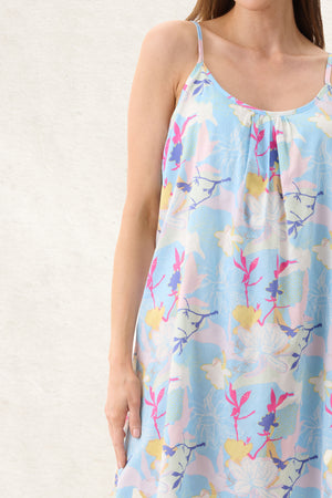 Discover our Xander vibrant print with a breezy blue base with splashes of summery playful print details. Crafted from 100% breathable cotton this short chemise features neckline gathers, adjustable straps, and elastic shirring at the back, for a better fit. The soft breathable fabric brings a modern pop of colour and effortless energy—perfect for warm-weather lounging and dreamy summer nights.