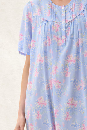 Embrace the elegance with our Jessica floral print short sleeve short nightie. Crafted from 100% woven viscose with thoughtful details like a button up front, yoke with soft gathers and front pin tucks. Light soft and cool, this nightie is perfect to wear on warm summer nights.