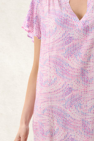Introducing our Reese flutter sleeve short nightie - the epitome of style and comfort for warm summer nights. This flutter sleeve nightie is crafted from 100% woven viscose. It features flutter sleeves, soft gathers on the body and an open v neckband. Light soft and cool, this swirly abstract print pyjama set is perfect to wear on warm summer nights.