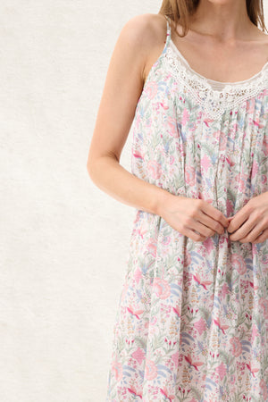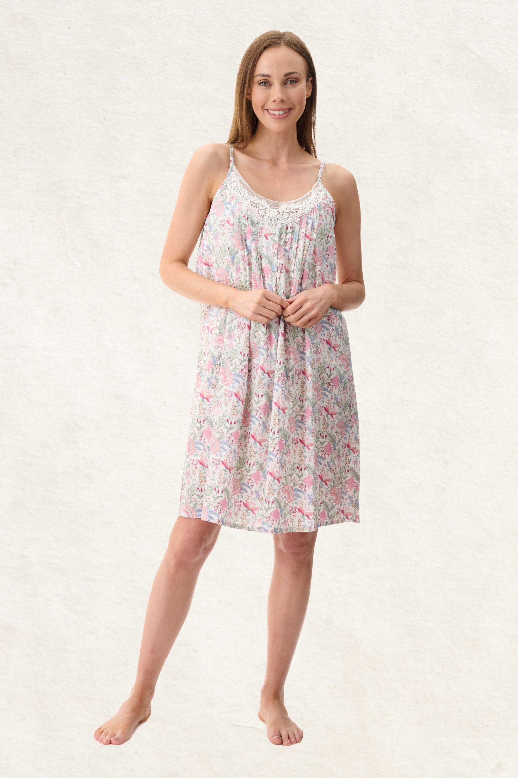 The beautiful Viviene floral print adds a touch of elegance to our pretty short chemise. Featuring a soft lace motif and pleats and crafted from 100% woven cotton. The soft breathable cotton will lull you into a peaceful slumber.