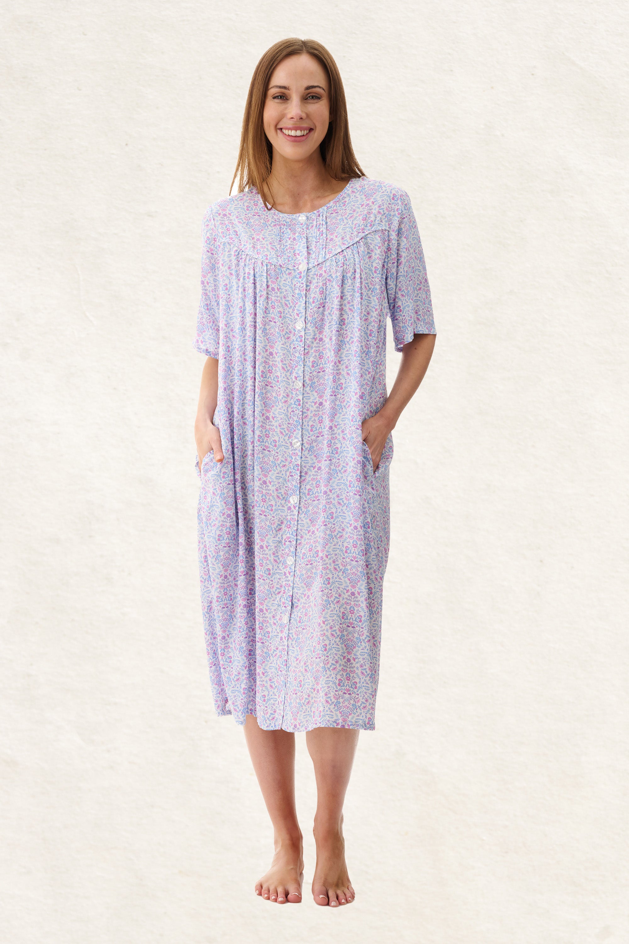 Embrace the elegance with our Pearl printed brunchcoat. Crafted from woven viscose, this brunchcoat is light and soft—perfect for those warm summer evenings. With thoughtful details like a yoke, front pin tucks, and buttons down the front, it effortlessly combines elegance and comfort.