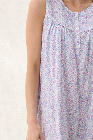 Embrace the elegance with our Pearl printed sleeveless short nightie. Crafted from 100% woven viscose, this nightie is light and soft—perfect for those warm summer evenings. With thoughtful details like a yoke and front pin tucks, it effortlessly combines elegance and comfort.