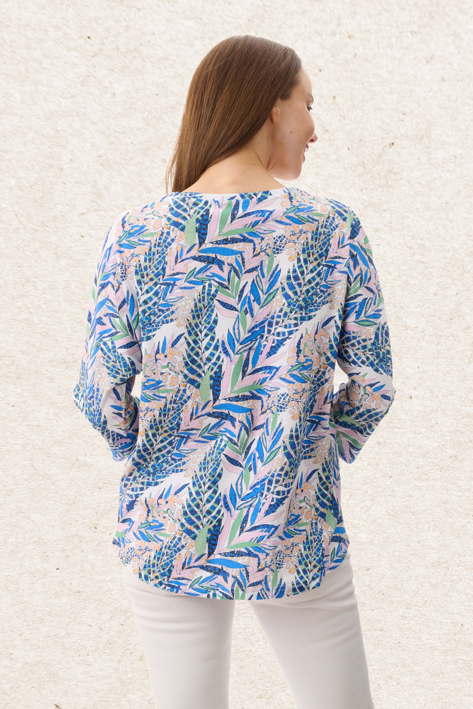 This 100% cotton top is the perfect trans-seasonal piece, offering comfort and style no matter the weather. The kimono 3/4 sleeves provide a relaxed, breezy fit, while the all-over print adds a vibrant, playful touch to your wardrobe.