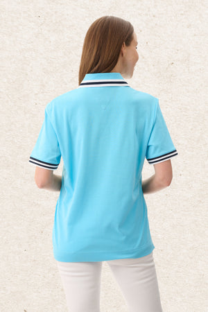 Made from a comfortable blend of 65% polyester and 35% cotton, this women's polo shirt offers the perfect balance of durability and softness. The classic button half placket and fully fashioned collar with tipping give it a refined, sporty look, while the armbands with tipping add a modern touch.