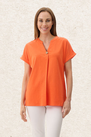 Crafted from a soft and stretchy blend of 95% cotton and 5% spandex slub, this top offers all-day comfort and a flattering fit. The V-neckline adds a touch of elegance, while the feature button at the front neck provides a stylish focal point.
