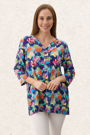 Crafted from 100% rayon, this lightweight top features an all-over print that adds vibrant flair to your wardrobe. Designed with a relaxed pop-over style, it offers easy wearability and effortless style.