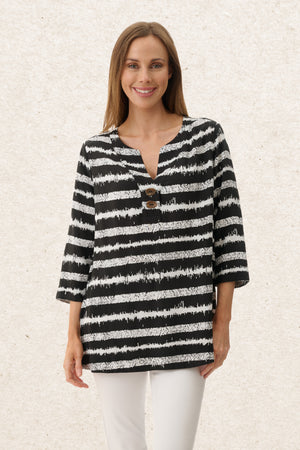 Crafted from 100% rayon, this lightweight top features an all-over print that adds sophistication to your wardrobe. Designed with a relaxed pop-over style, it offers easy wearability and effortless style.